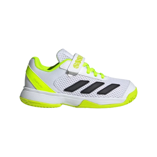 Cuando quieren acelerar el ritmo, los jóvenes que empiezan en el tenis necesitan zapatillas ligeras y con buena sujeción. Estas adidas Courtflash para niños cuentan con una parte superior de malla transpirable, combinada con cordones y una tira de velcro que mantiene el pie firme incluso a máxima velocidad. La suela Adiwear, resistente al desgaste, está diseñada para soportar movimientos rápidos, cambios de dirección y un juego ágil en distintas superficies.