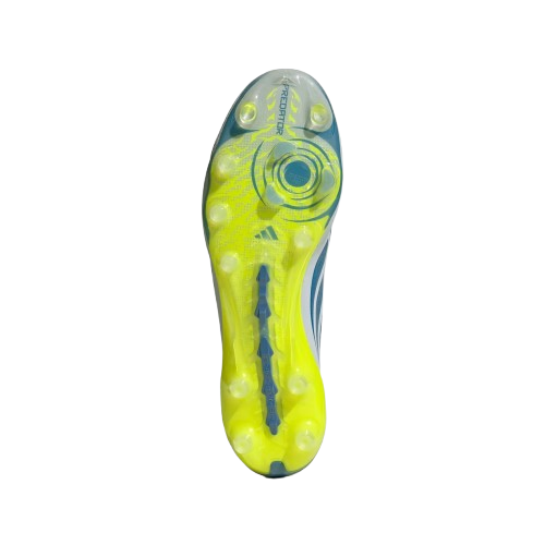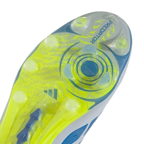 La suela Strikeframe con tacos estratégicamente distribuidos garantiza una tracción superior y estabilidad en campos de hierba artificial, facilitando movimientos rápidos y cambios de dirección seguros. Además, la tecnología Powerspine en el mediopié proporciona una base firme para potenciar cada golpeo.