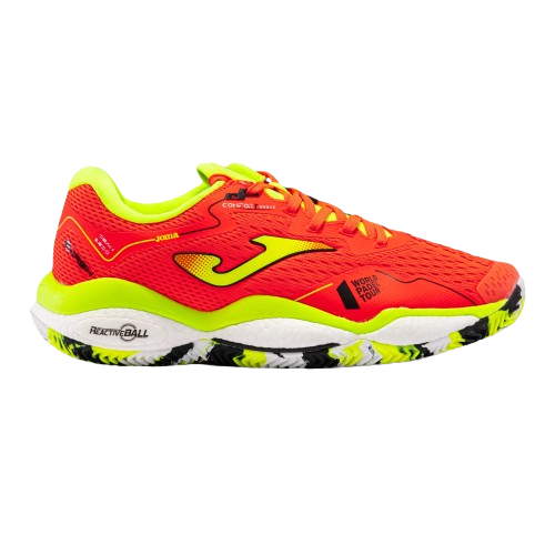 Las zapatillas de pádel Joma T.Smash 2308 Naranja Flúor están fabricadas con materiales de alta calidad y gran resistencia, pensadas para jugadores que buscan durabilidad, estabilidad y confort en pista. Su estructura combina nailon resistente y microfibra de alta durabilidad, ofreciendo una excelente protección frente al desgaste propio del pádel.